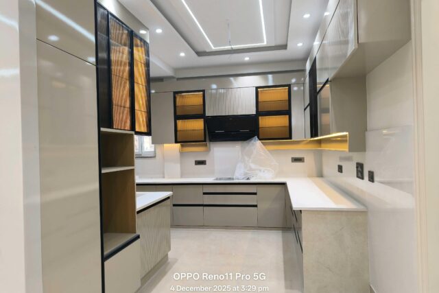 Luxurious independent 5 BHK Flat in Sector 4 Vaishali Ghaziabad – builder flats, spacious floor drawing and dining area ,the floor is well furnished with wooden work in kitchen, bedroom and drawing room. Modular kitchen fittings done with soft closure panels, chimney fitted in kitchen, wardrobes in all bedrooms, high class interior done, led panels fitted in bedrooms and hall. Nice ventilation, vaastu friendly, with 4 washrooms and 3 balconies, lift and parking are also available, the property has a dedicated security guard. Property rest upon 60 ft. Wide road. Public transport easily available. Ownership will be freehold. All the basic amenities nearby groceries, park, malls, schools, hospitals, and metro connectivity nearby.